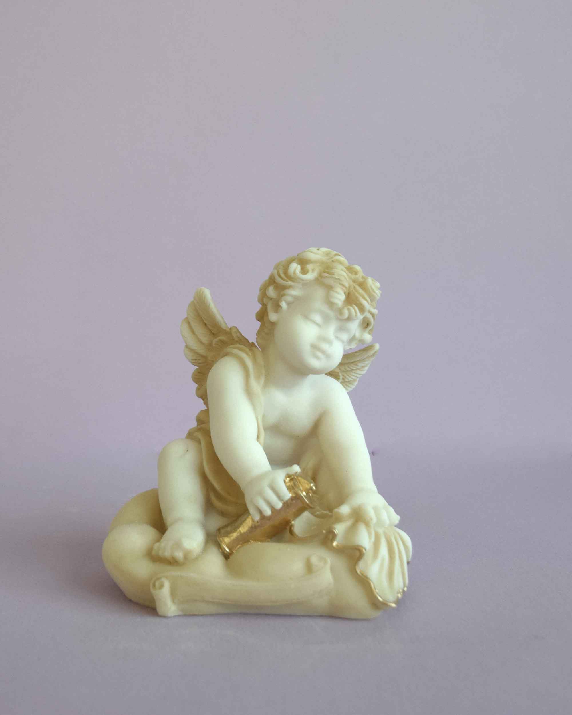 A statue of an Angel holding a papyrus.