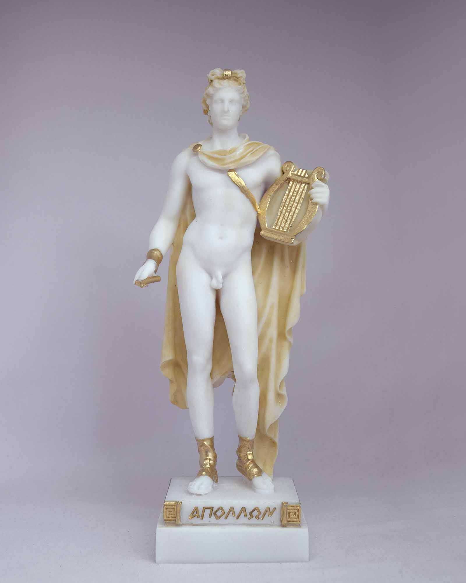 Greek statue of Apollo holds his lyre. Αn Olympian Greek statue for sale.