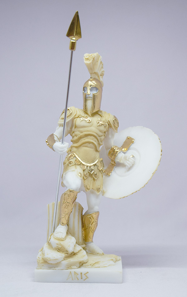 Ares classic statue standing with his spear and shield