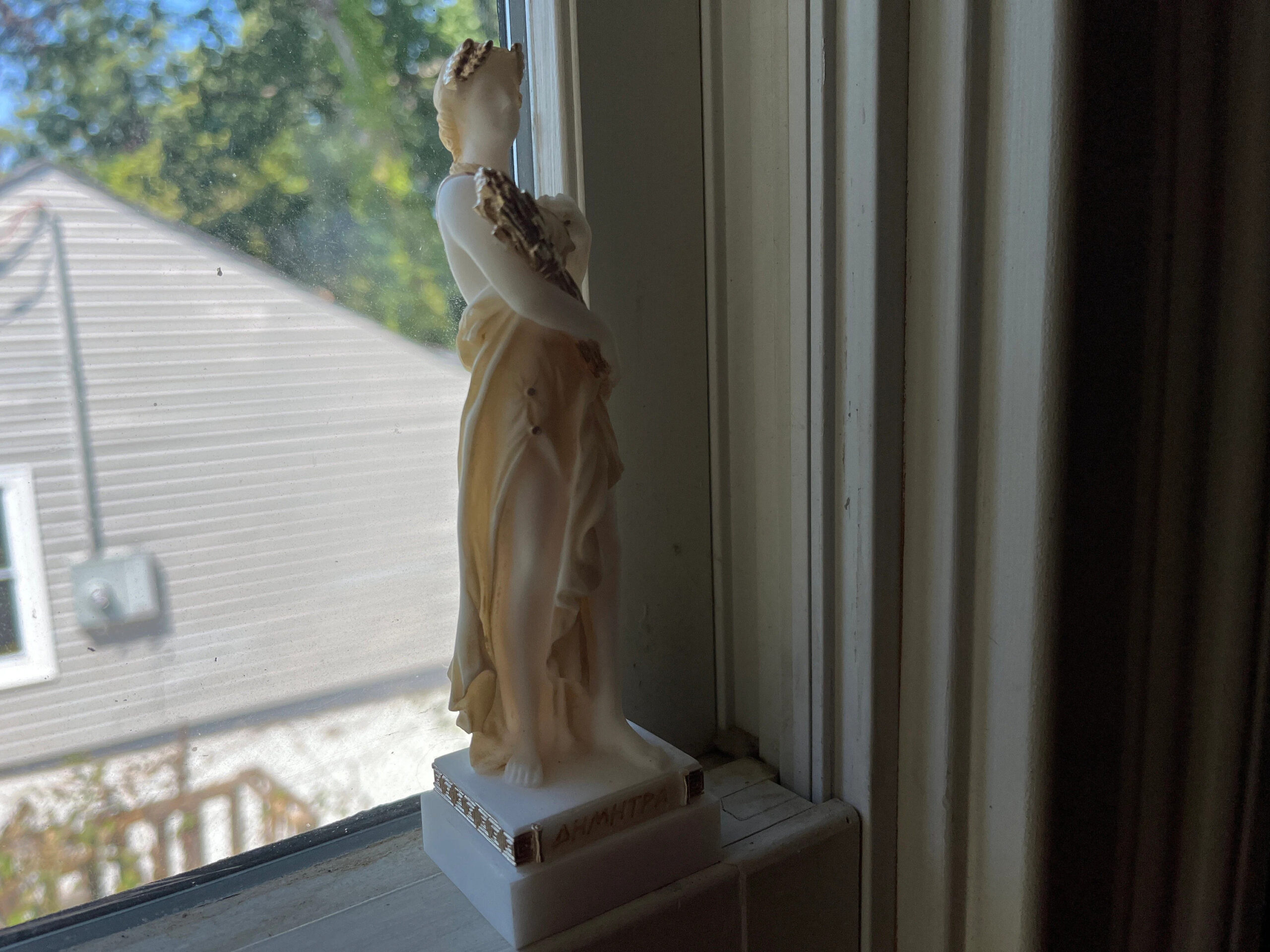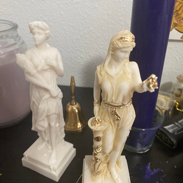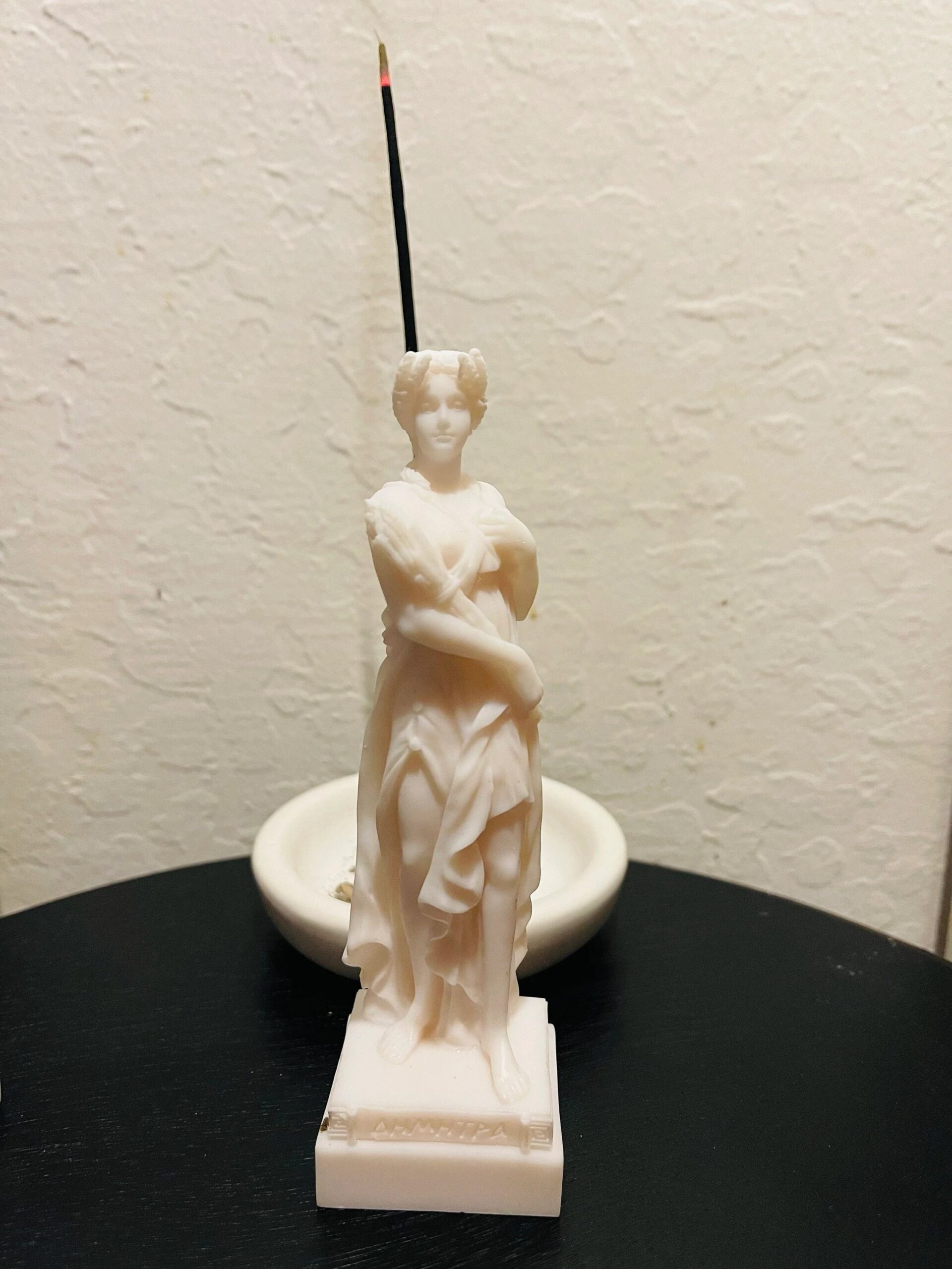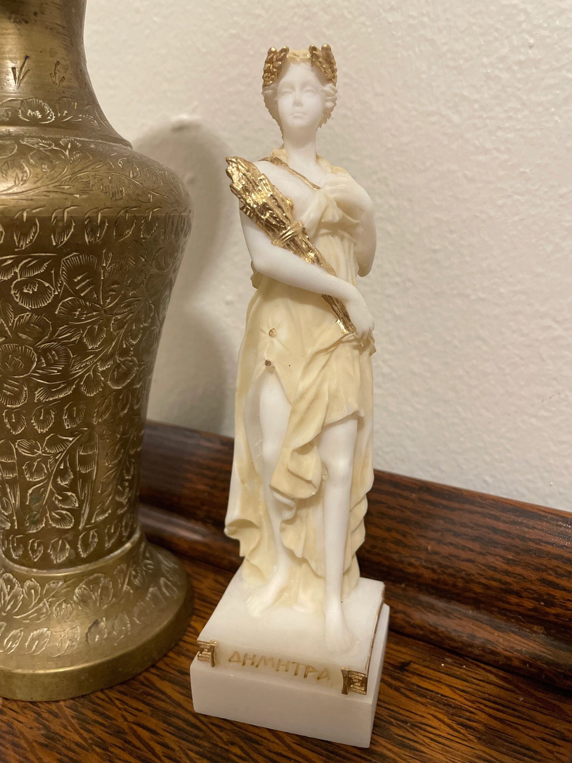 Greek statue of Demeter standing and holding wheat. Αn Olympian statue for sale.