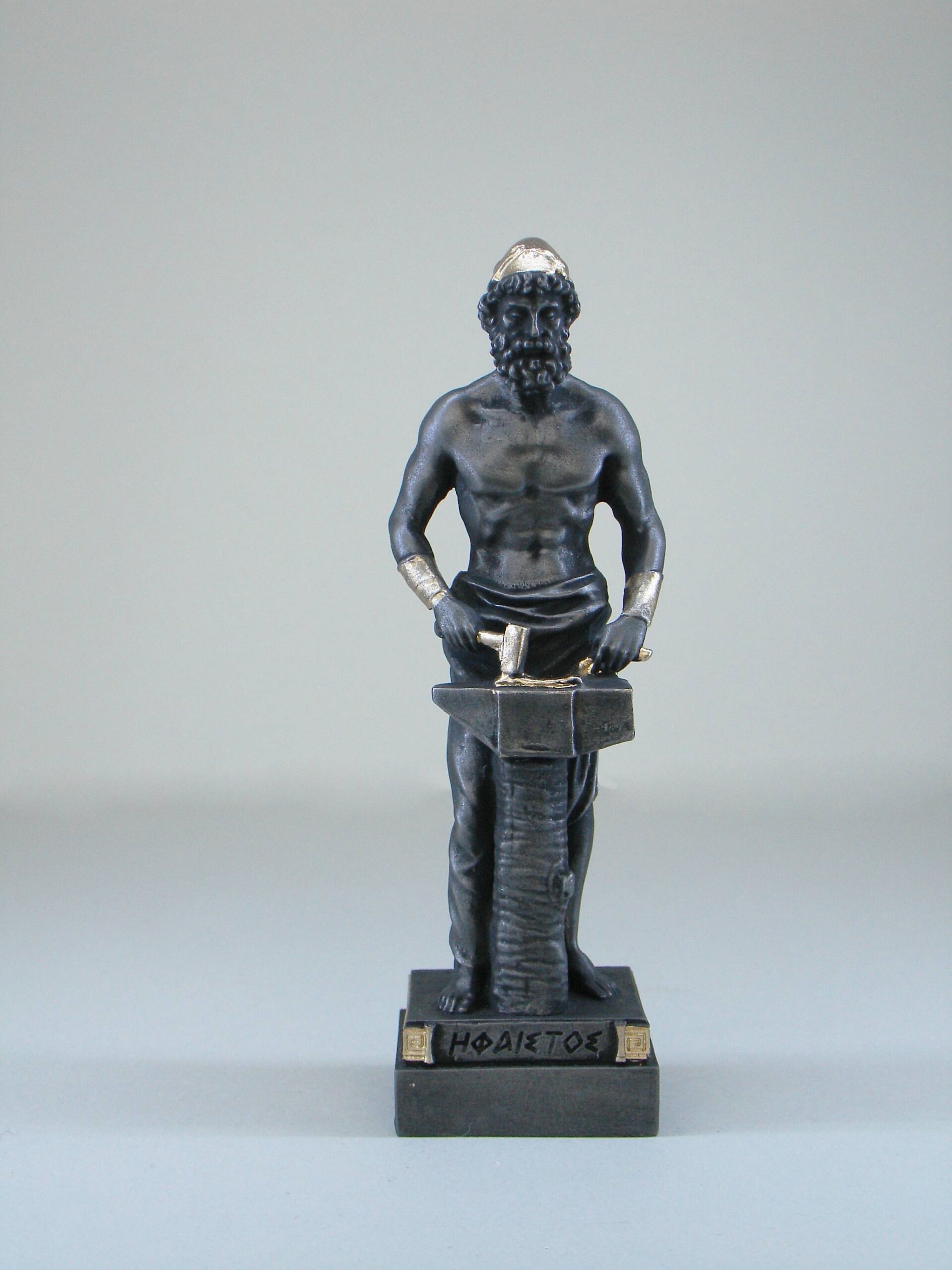 Greek statue of Hephaestus working on anvil. Αn Olympian Greek statue for sale.