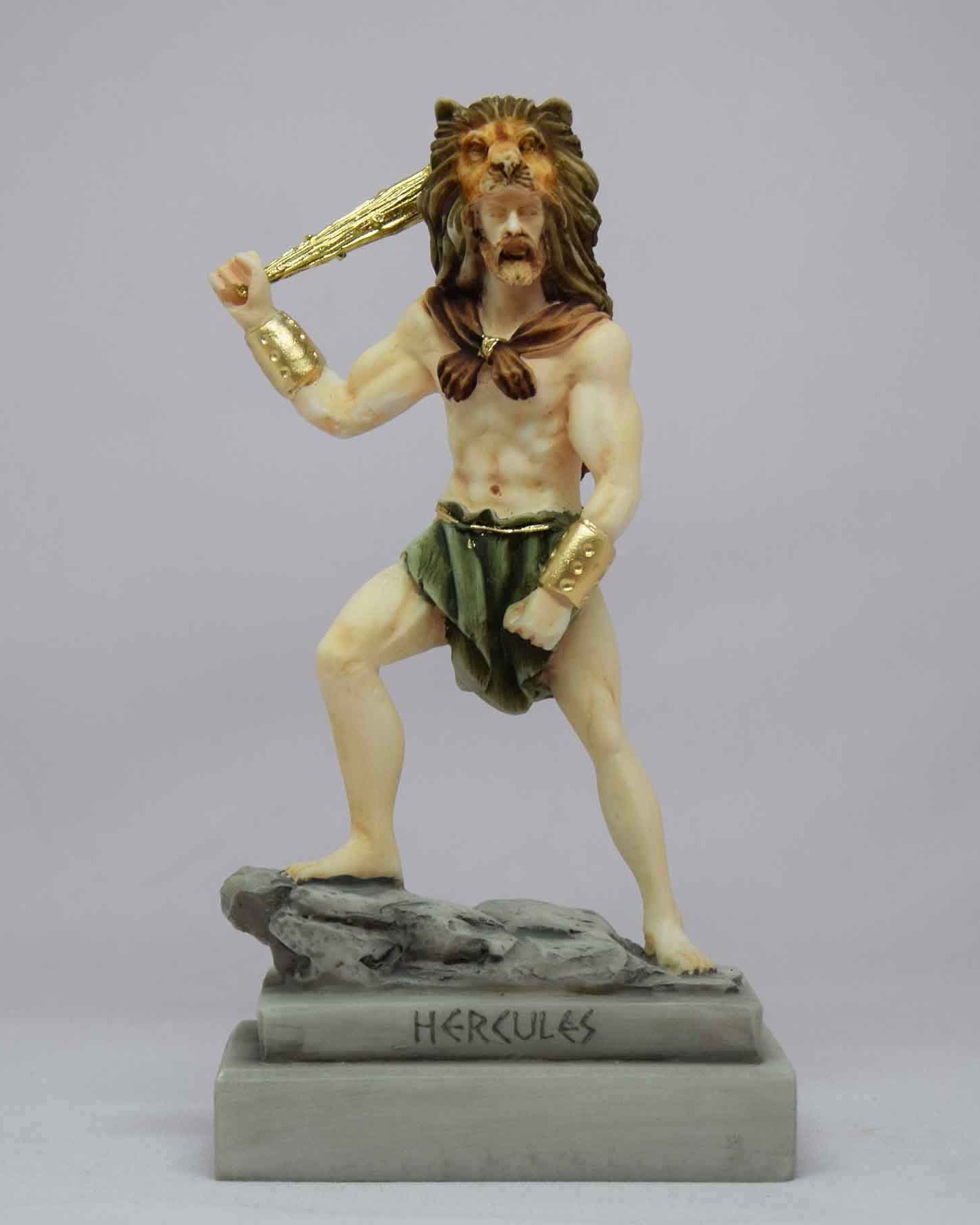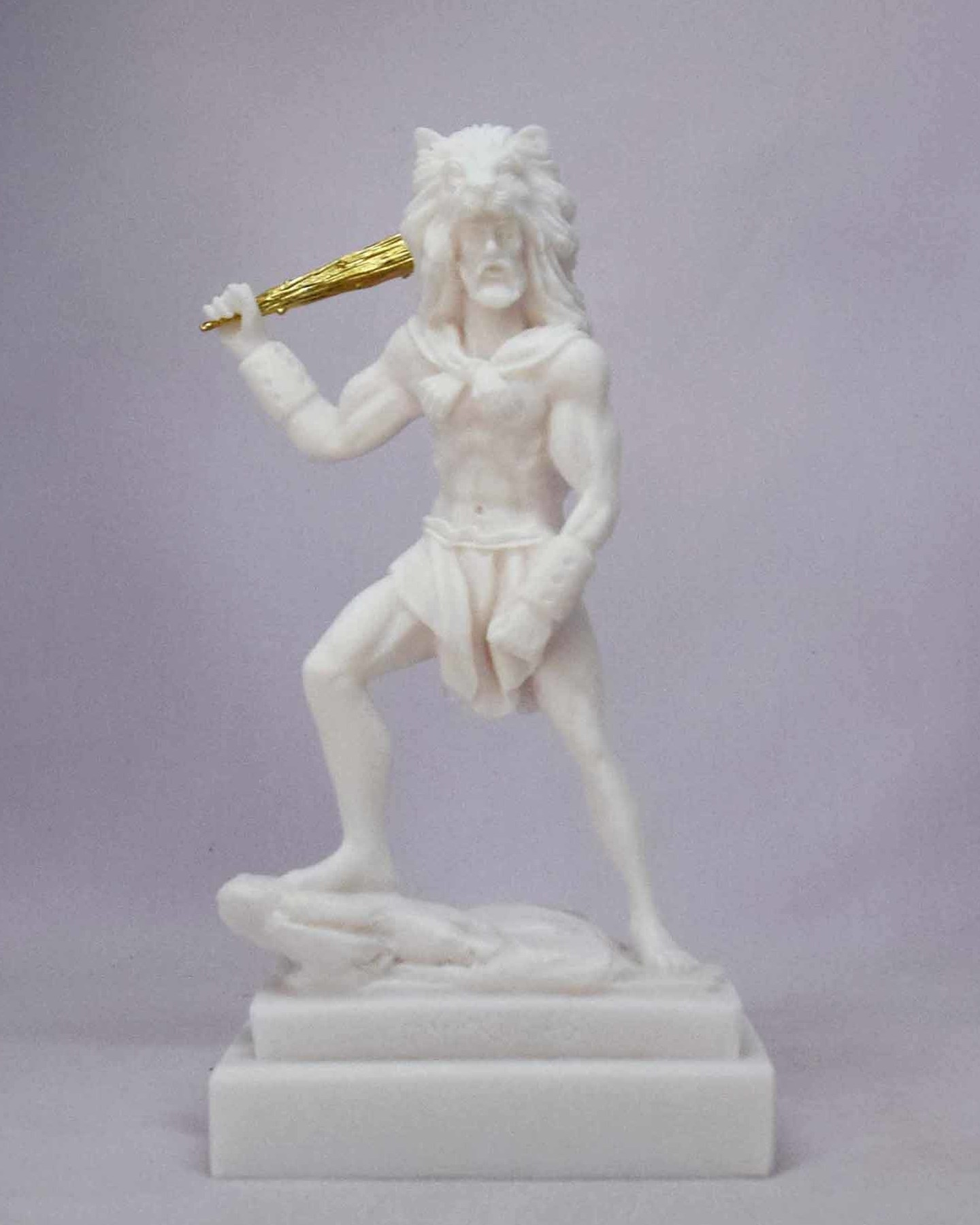 Hercules ready to fight with a bat wearing a lion’s hat.