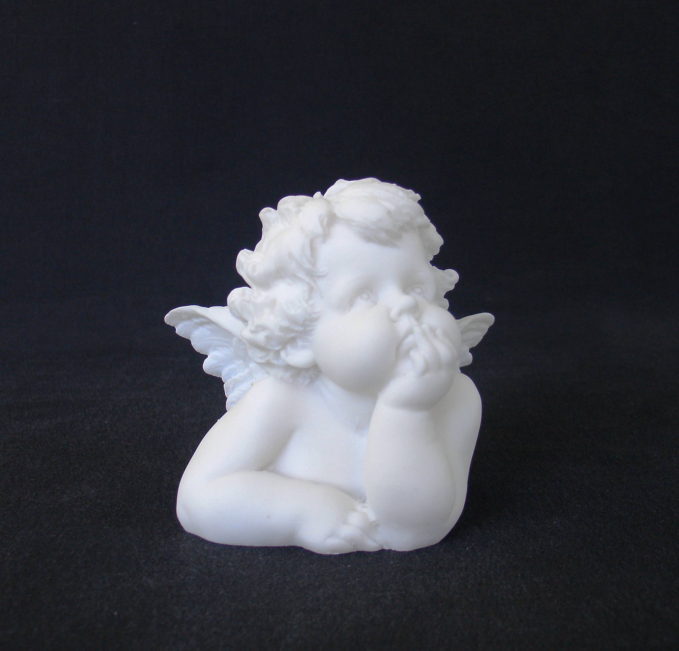 Greek statue of a little Angel thinking.
