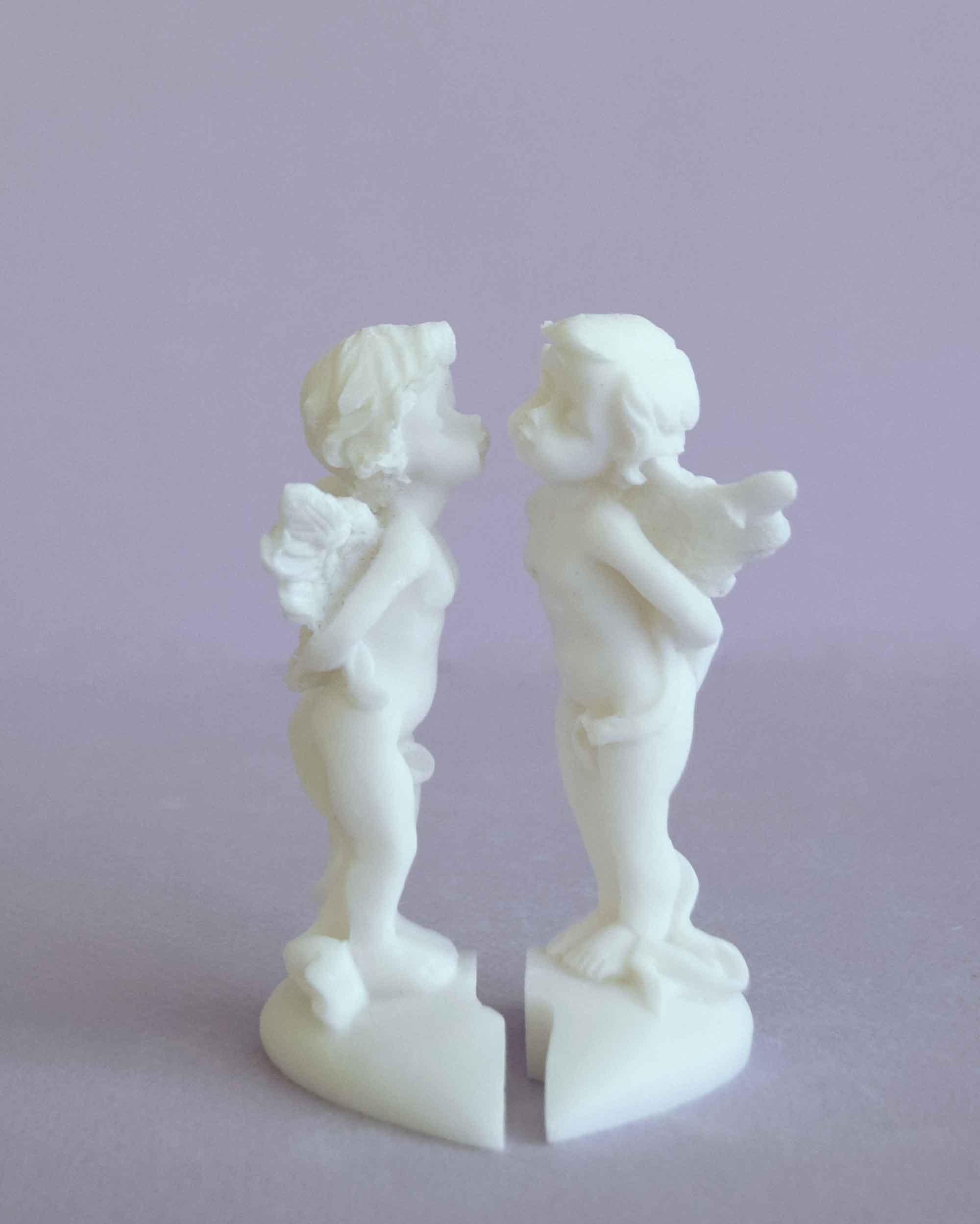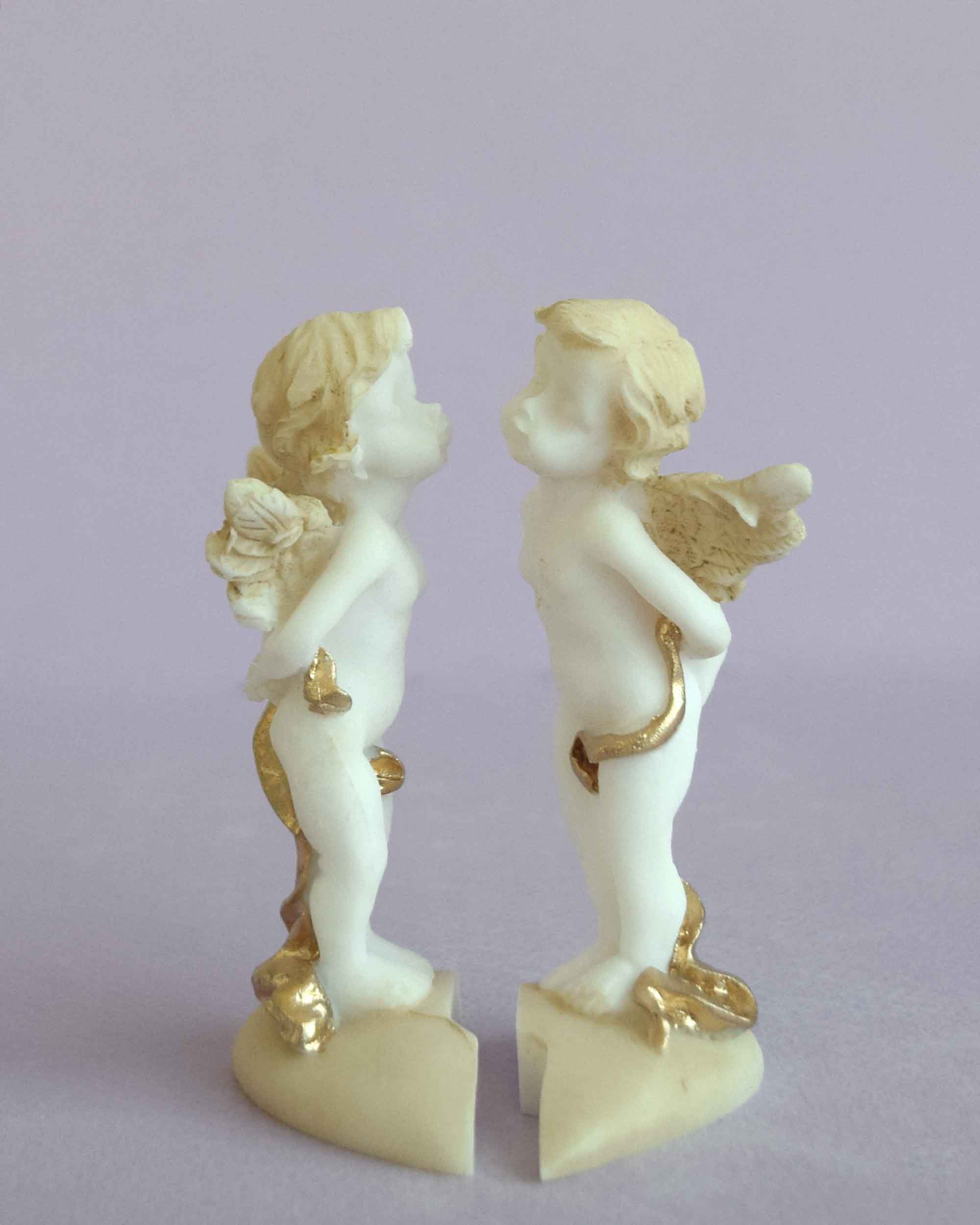 The statue of two Angels standing on a broken heart.