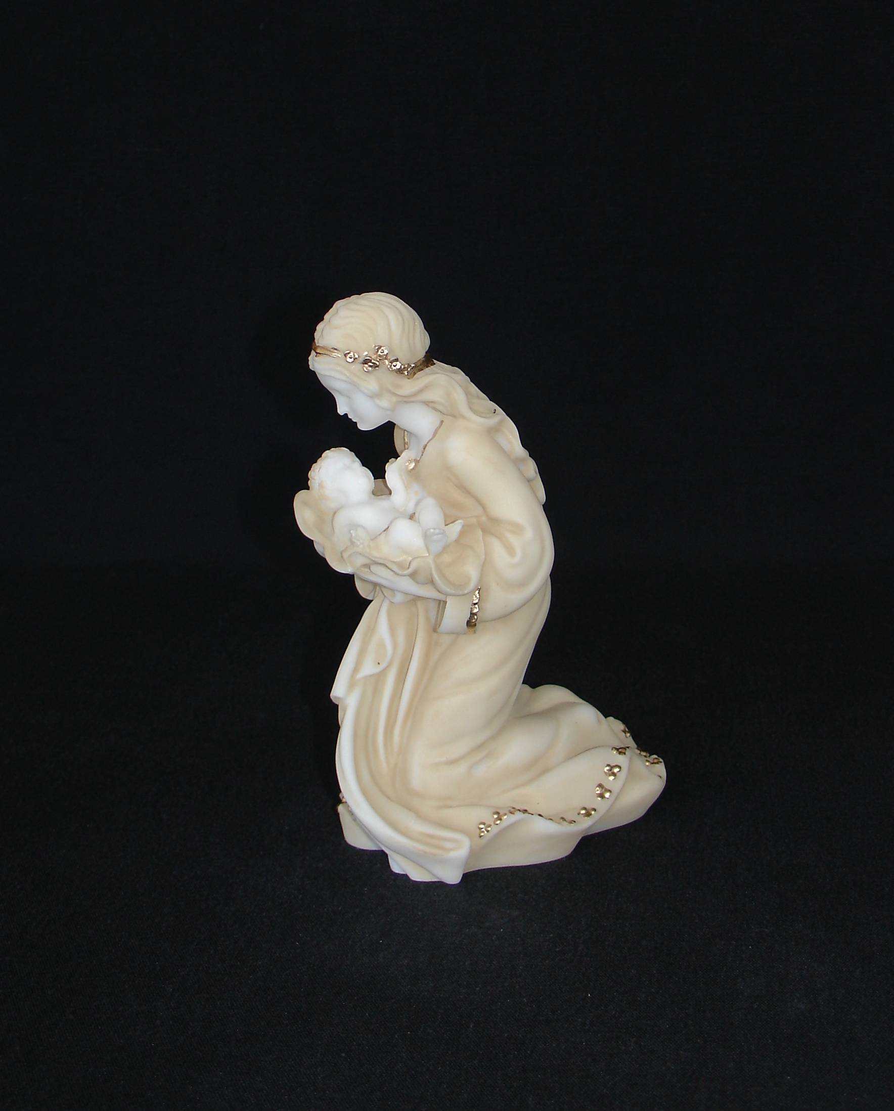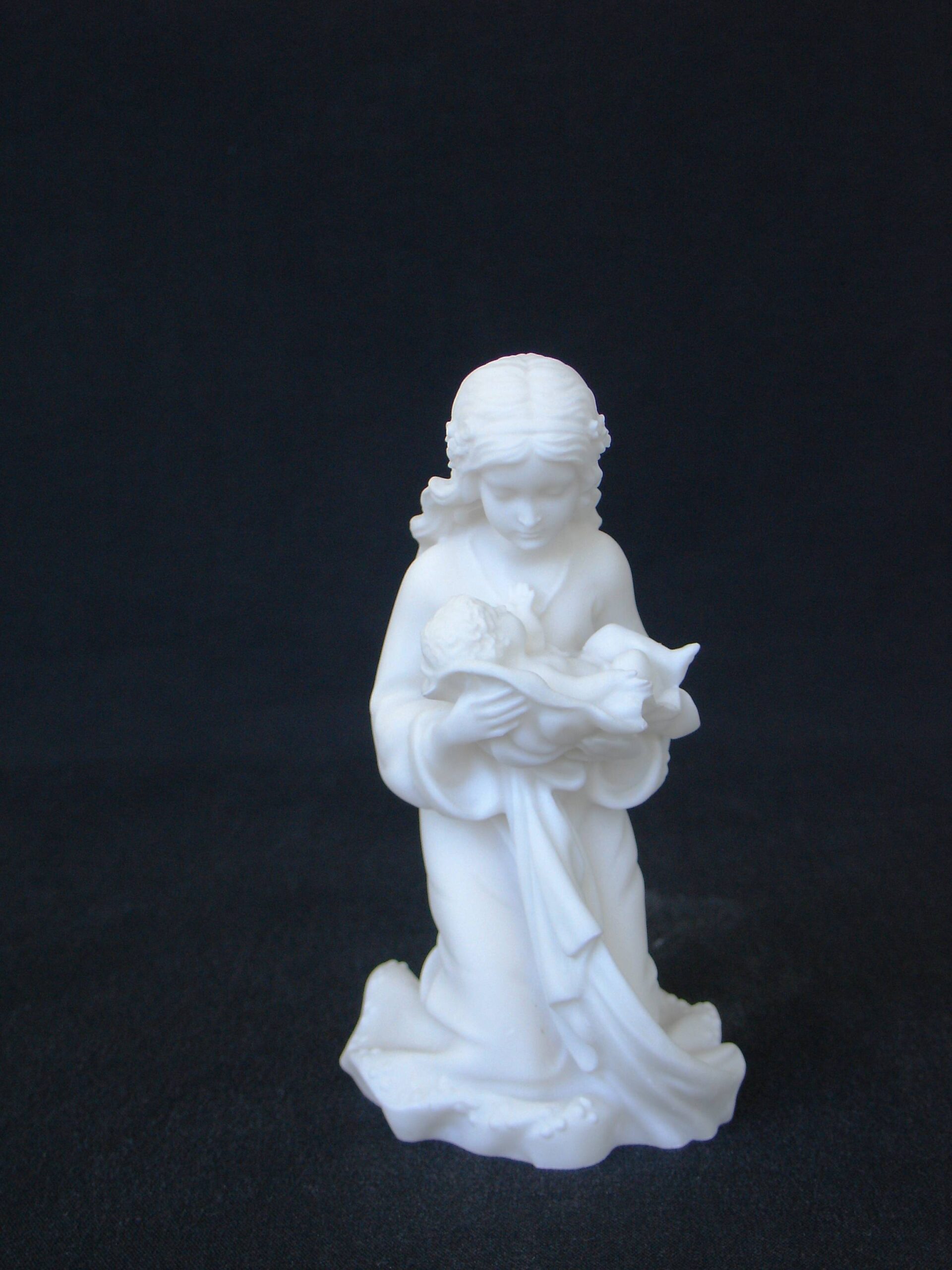 Mary holding baby Jesus statue made of Alabaster