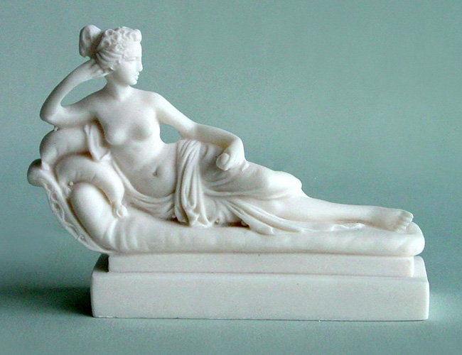 A replica statue of Paolina Borghese made by Canova.