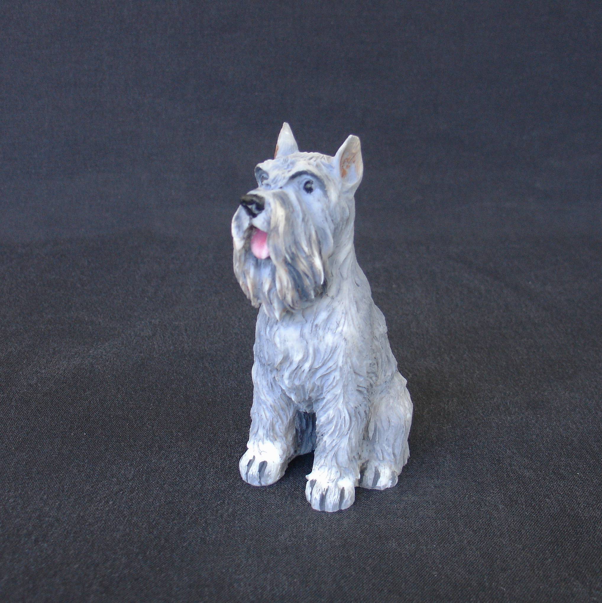 This Schnauzer pet dog statue comes in color at 11 cm (4.33 inches) height – 200 g (0.44 lbs) weight.