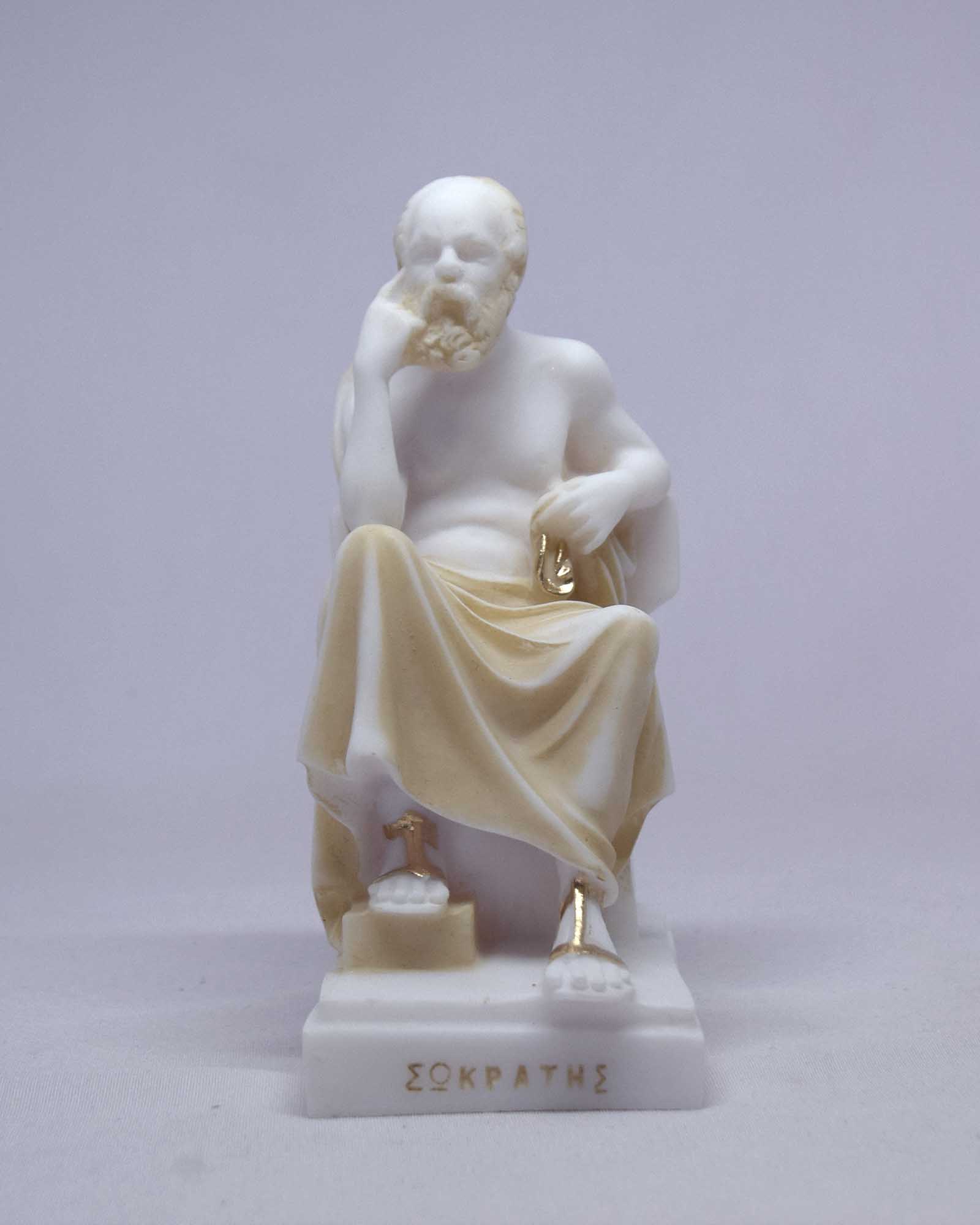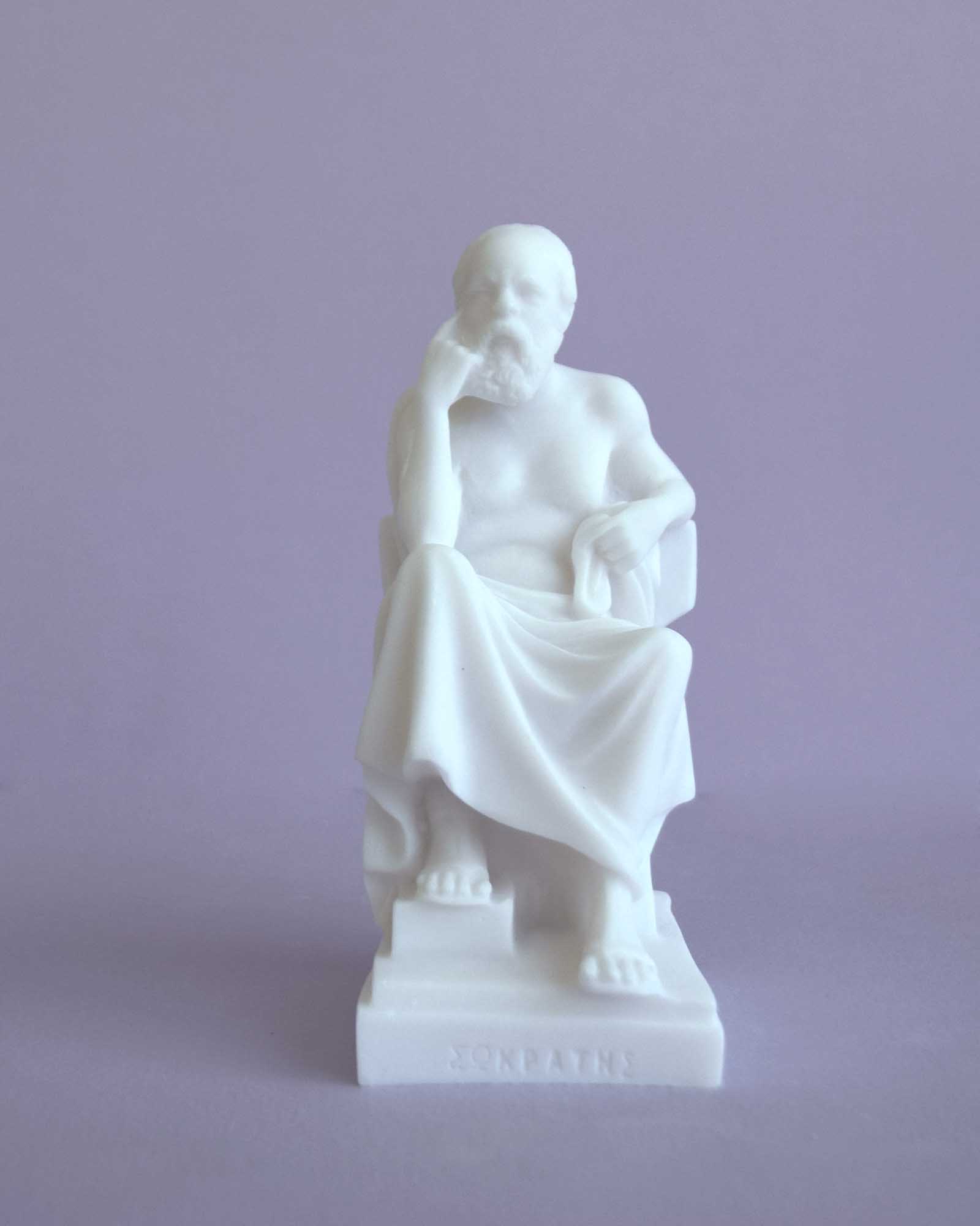 The statue of Socrates thinks while sitting.