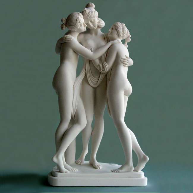 Greek statue of the 3 nude Graces hugging each other. This statue is a exact replica of Antonio Canova’s statue, hosted at Hermitage Museum.