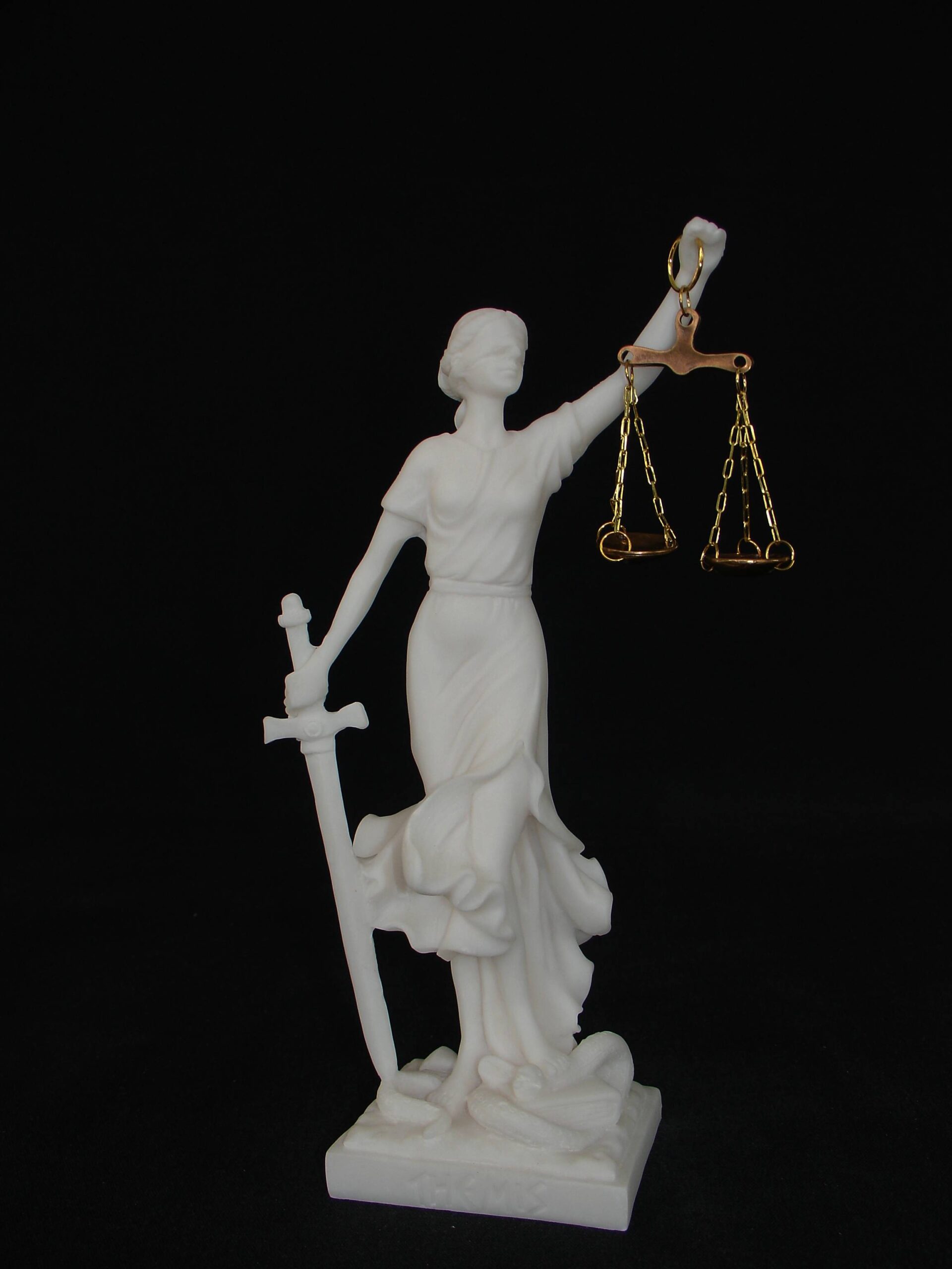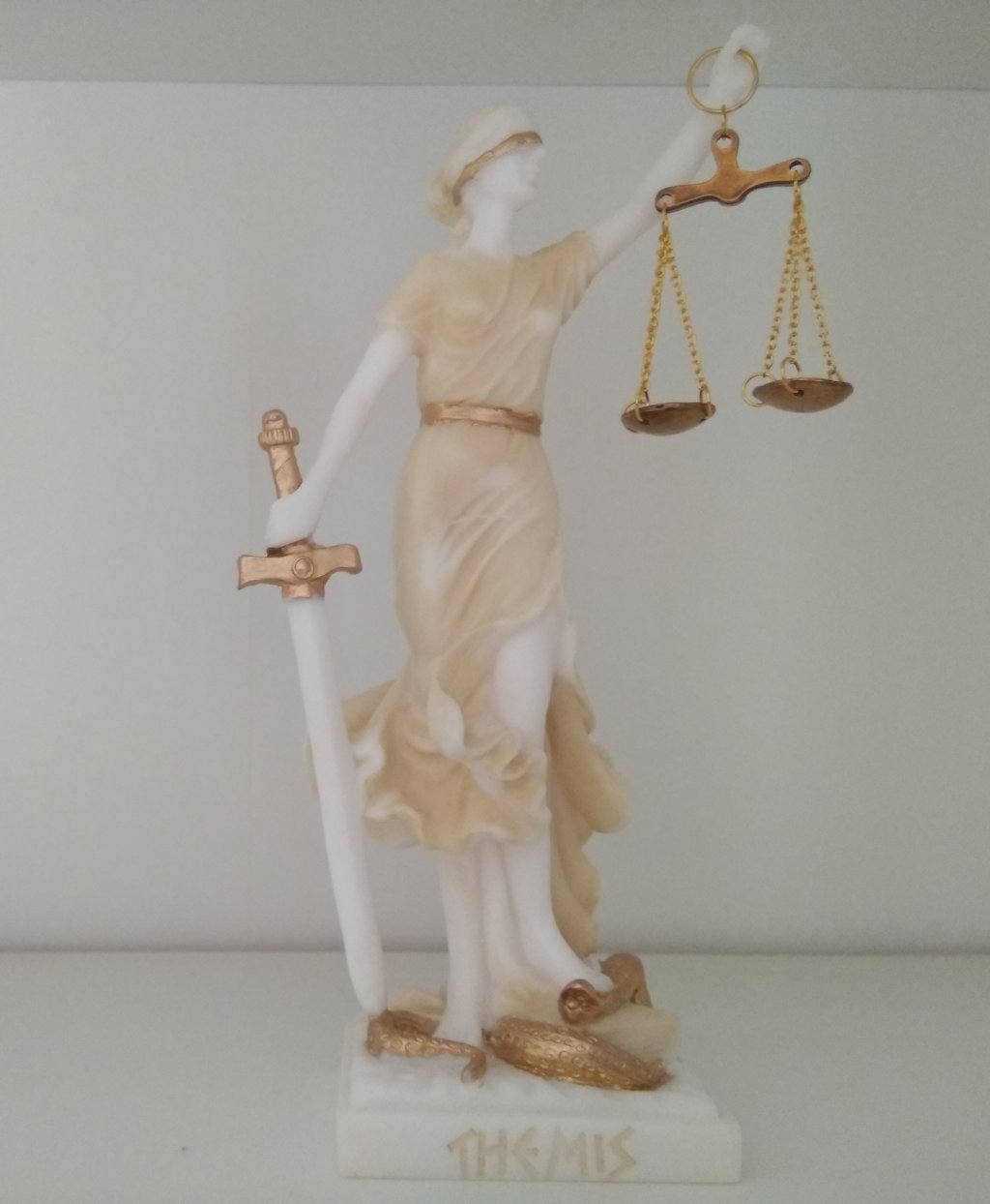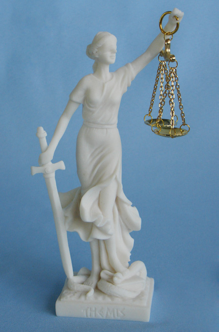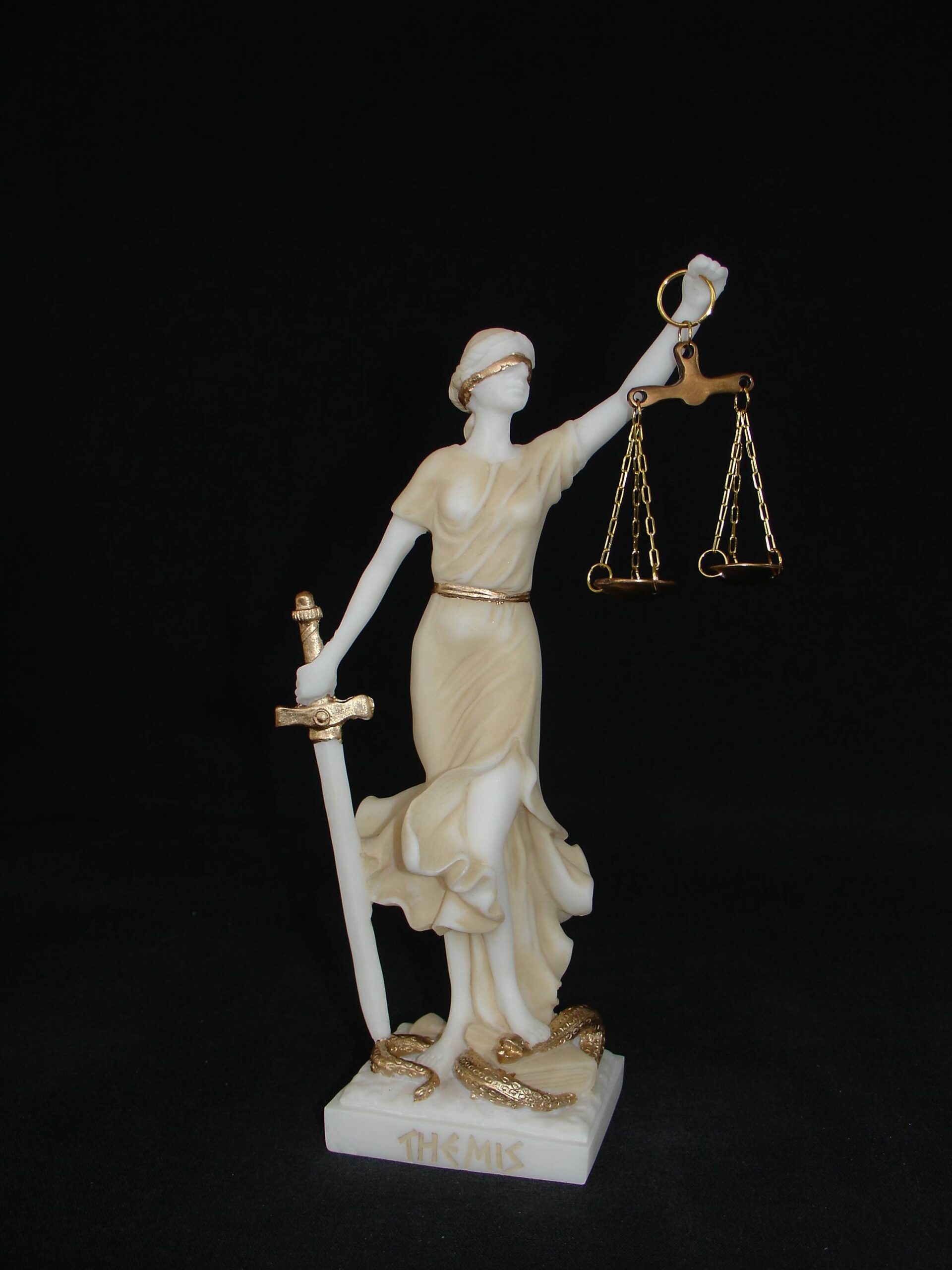 Greek statue of Themis Goddess of Justice with her name written in Latin characters. Ideal gift for Lawyers and Law offices.