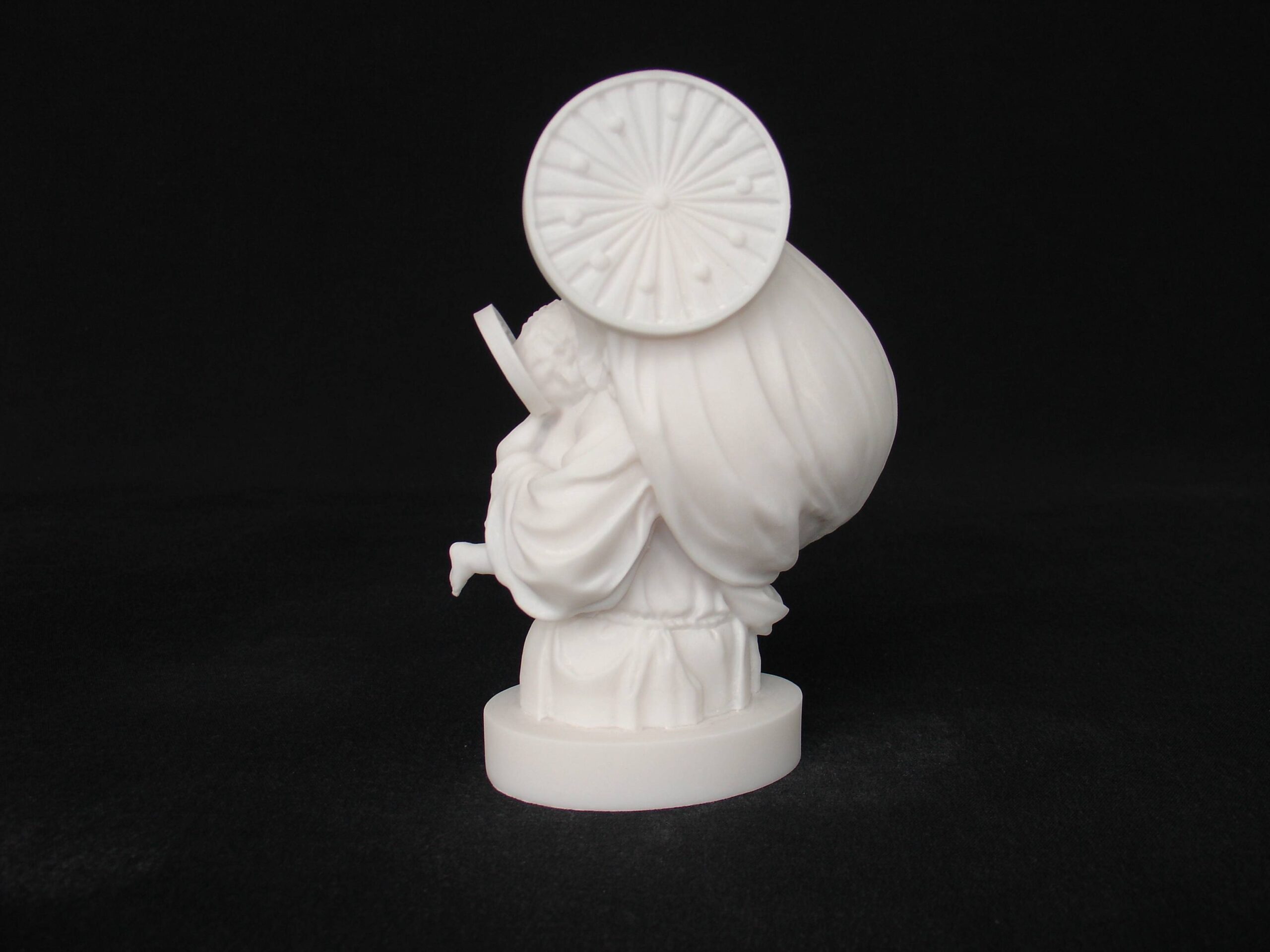 Greek statue of Virgin Mary and baby Jesus.