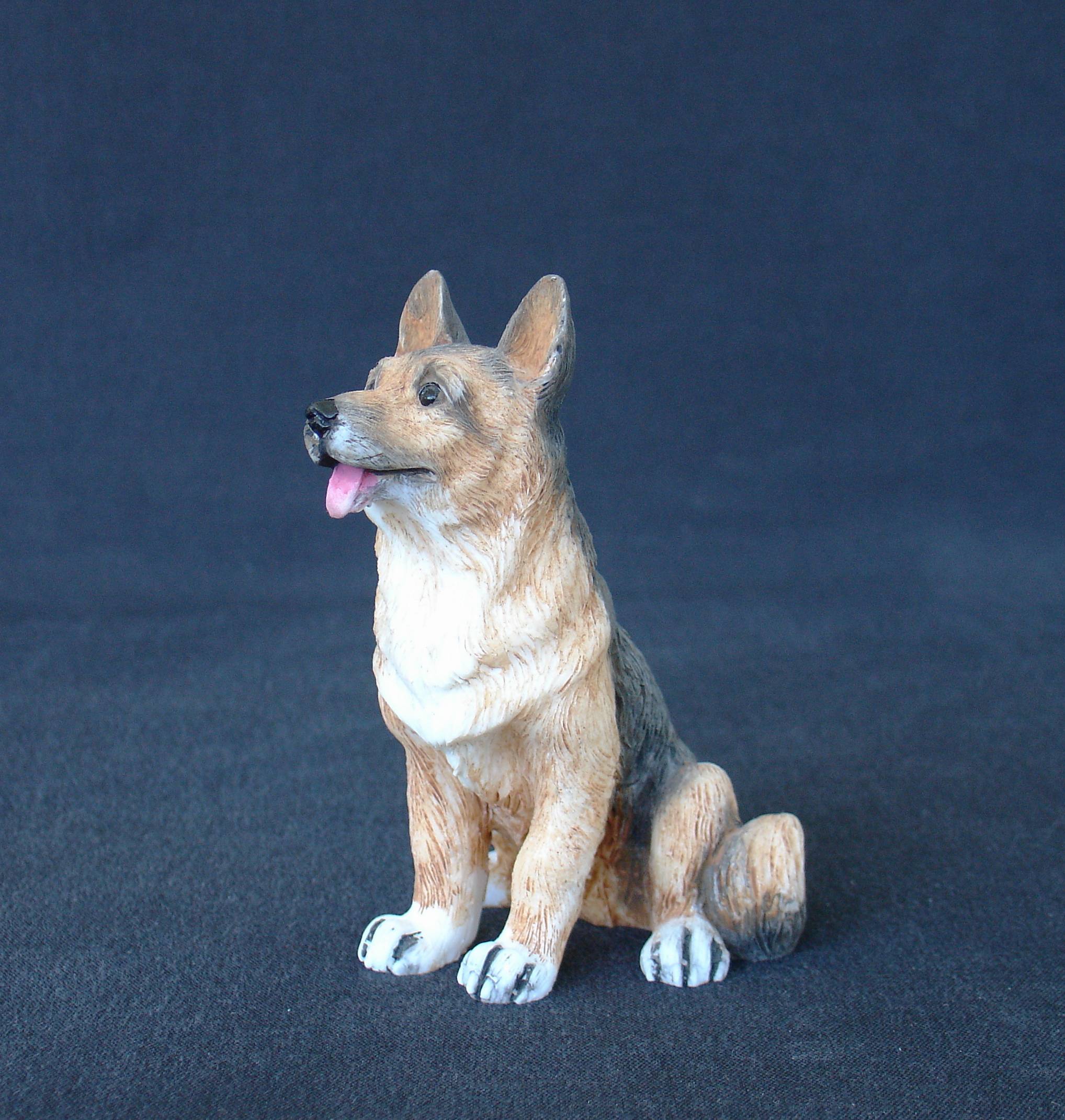 This German Shepherd dog pet statue comes in color at 11 cm (4.33 inches) height – 200 g (0.44 lbs) weight.